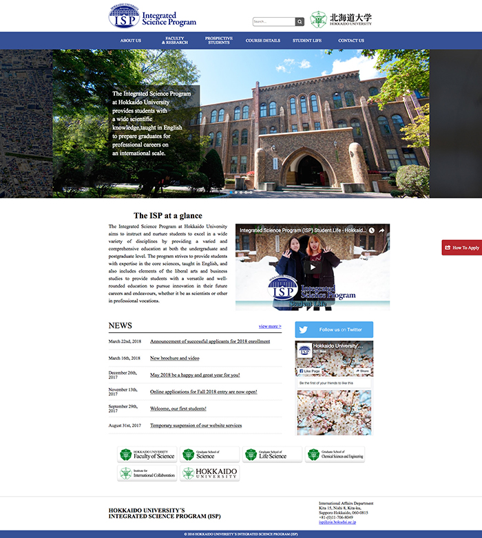 web INTEGRATED SCIENCE PROGRAM (ISP) webサイト Client:北海道大学 URL: https://www.oia.hokudai.ac.jp/isp/ 2016.8 CLOSE