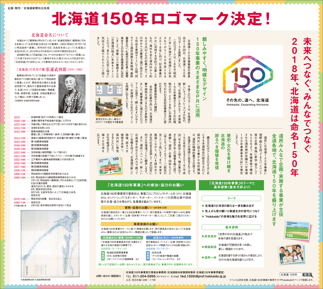 北海道150年ロゴマーク募集チラシ・PRチラシ・新聞10段広告